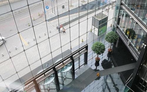 双层呼吸式玻璃幕墙,当今欧洲前卫、生态的幕墙系统。保温、隔热、节能、降噪、防尘,夹层可作为排出楼内废气通道,保障室内空气清新。全通透玻璃幕墙不仅改变传统商场内外交流障碍,令室内外流光溢彩,消费者驻足欣赏期间,即可创造更多商业机会。